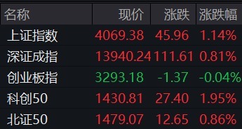 截至午间收盘,沪指涨1.14%,报4069.38点,创逾10年新高;深成指涨0.81%,报13940.24点兴旺国际投资,创业板指跌0.04%,报3293.18点,科创50指数涨1.95%,报1430.81点。沪深两市合计成交额17812.91亿元,全市场超3600只个股上涨。